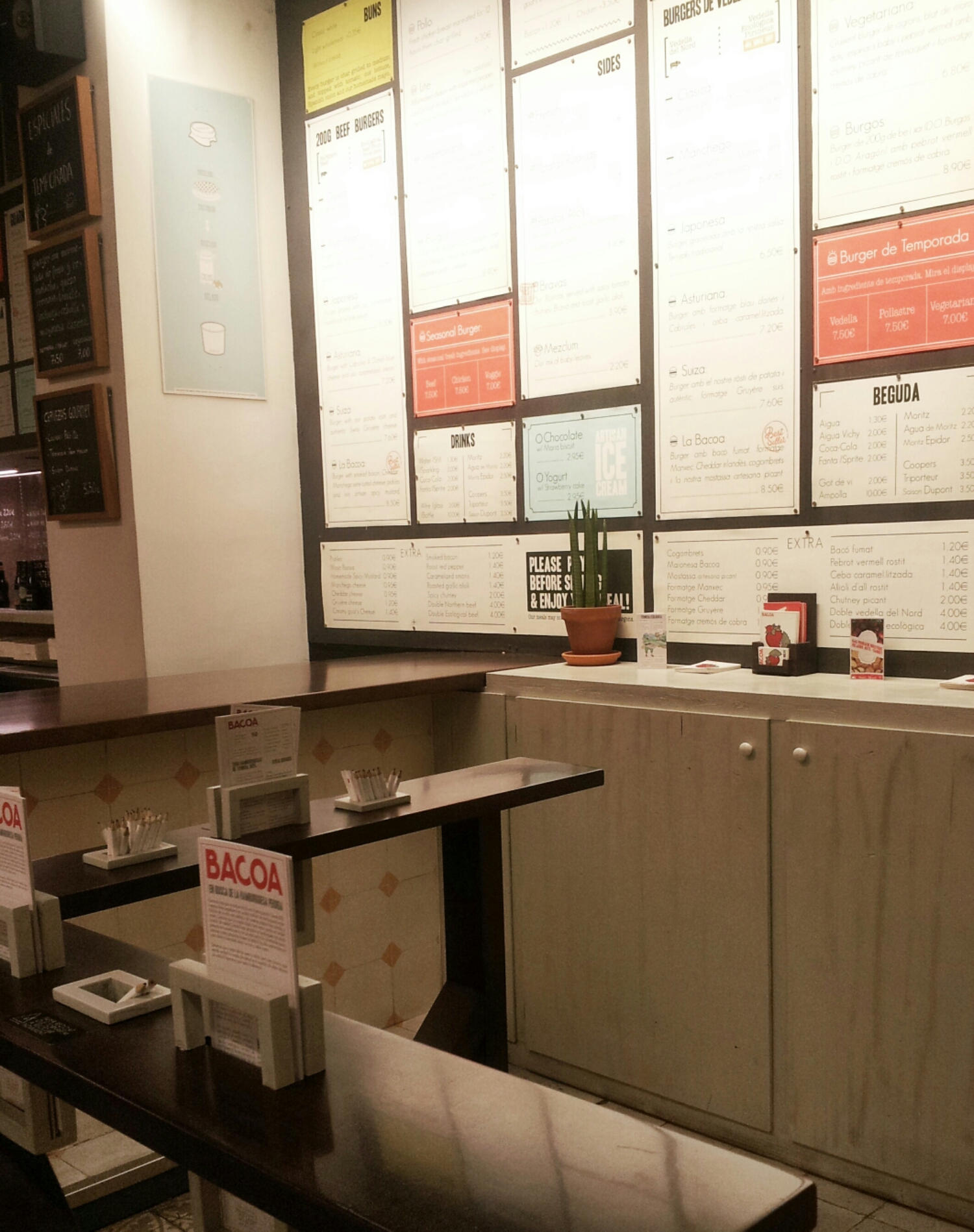 So what’d we do as soon as we tossed our backpacks on our hostel beds in Barcelona??!! FOOD. We ate our feelings. Specifically, a burger from Bacoa and cronuts from Chok. It is seriously difficult to give in to sadness while eating a cronut, folks. Especially one that’s dipped in chocolate and smothered in toffee. It probably also helped that the burger bar was filled with locals and tourists-all watching the football game. And all in a fine mood. Maybe because the game was still scoreless.